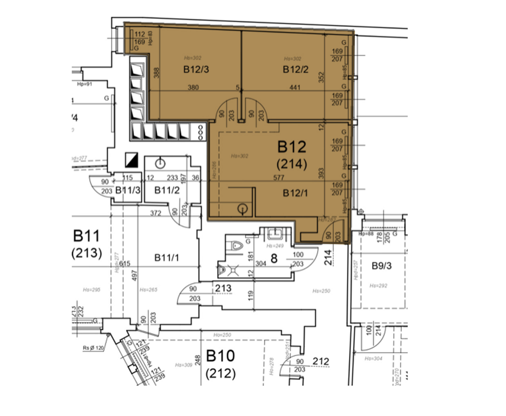 Lokal 214 – 57 m2 + 8 m2 pow. wsp. = 65 m2
